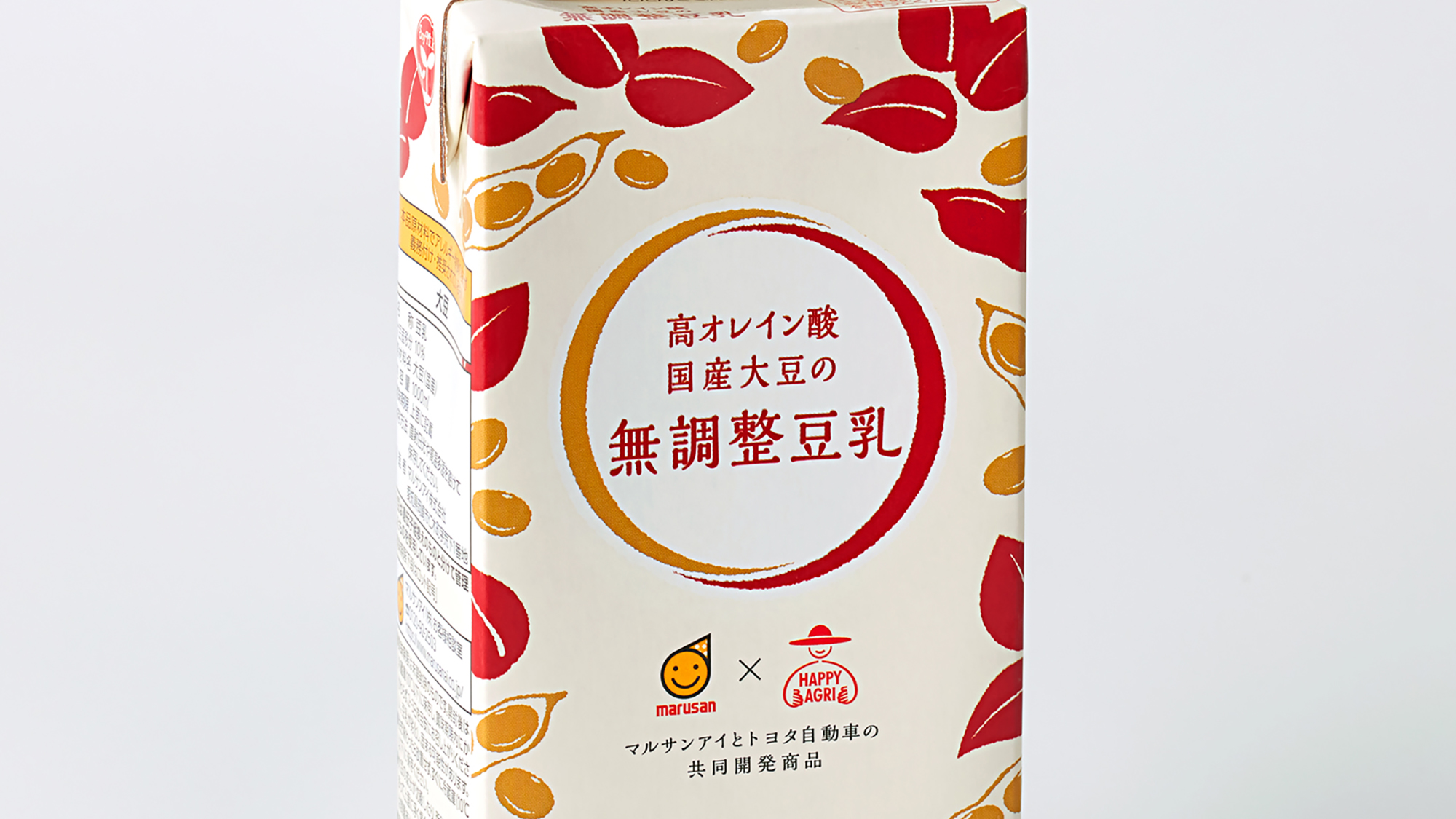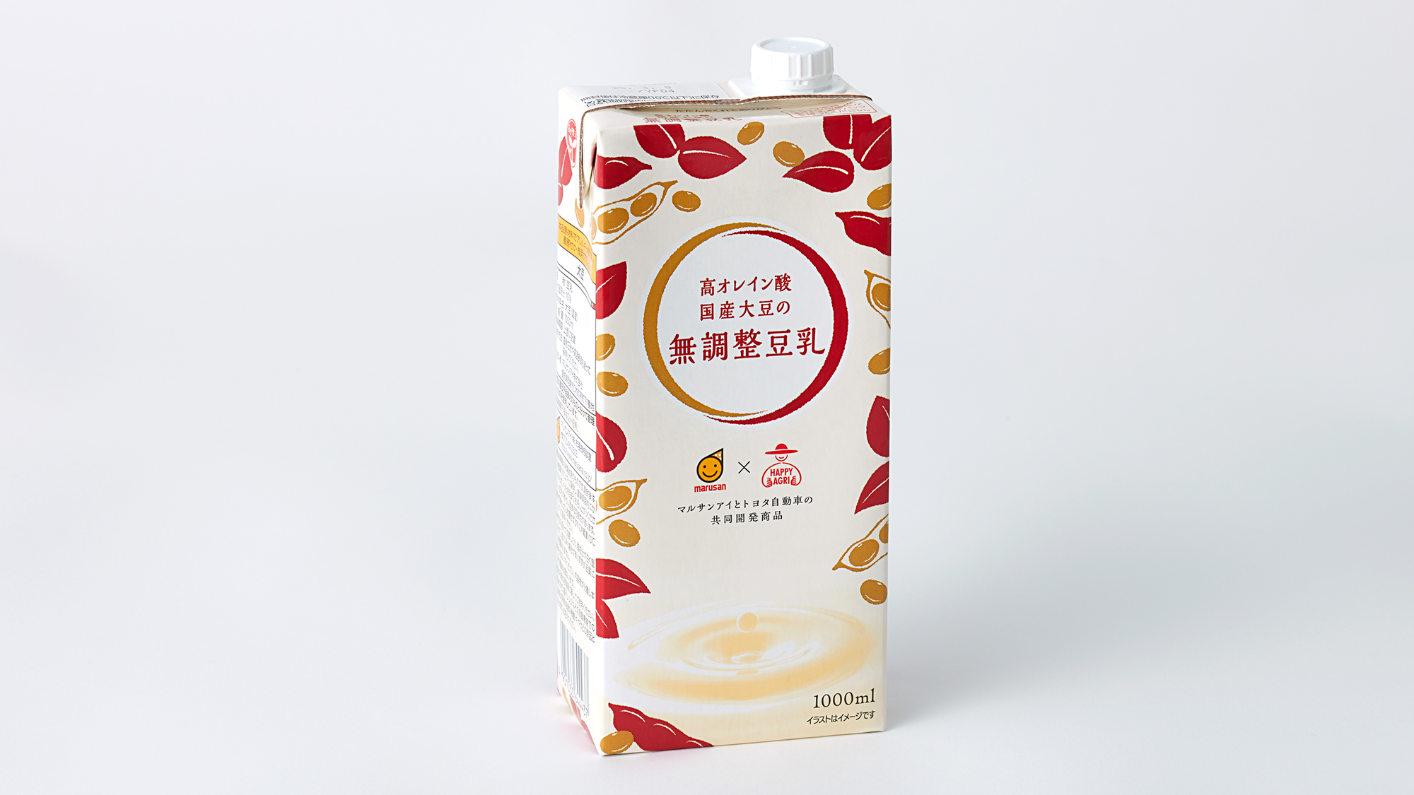 マルサンアイとトヨタ自動車「国産大豆応援プロジェクト」のコラボ開発のEC専売品。2社のコラボを赤・金の2色使いで表した。高価格帯でもあり健康意識の高い豆乳ユーザーに特別な豆乳だと感じてもらえるよう、おいしさと華やかなイメージを目指した。