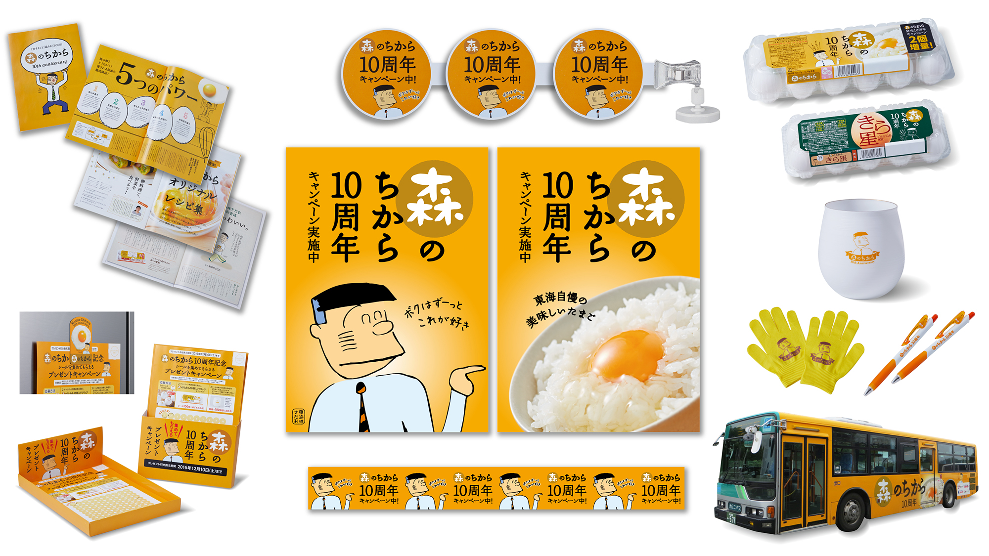 商品開発から携わったスーパーマーケットのプライベートブランド「森のちから」。ブランディング全般を担当し、パッケージには東海林さだお氏のイラストを起用した。発売10周年記念キャンペーンの企画・実施により「森のちから」ブランドとして広がり、現在では総販売数においてNB商品に匹敵する商品に育っている。